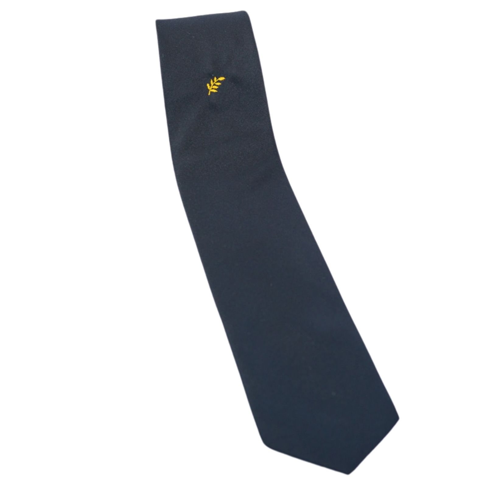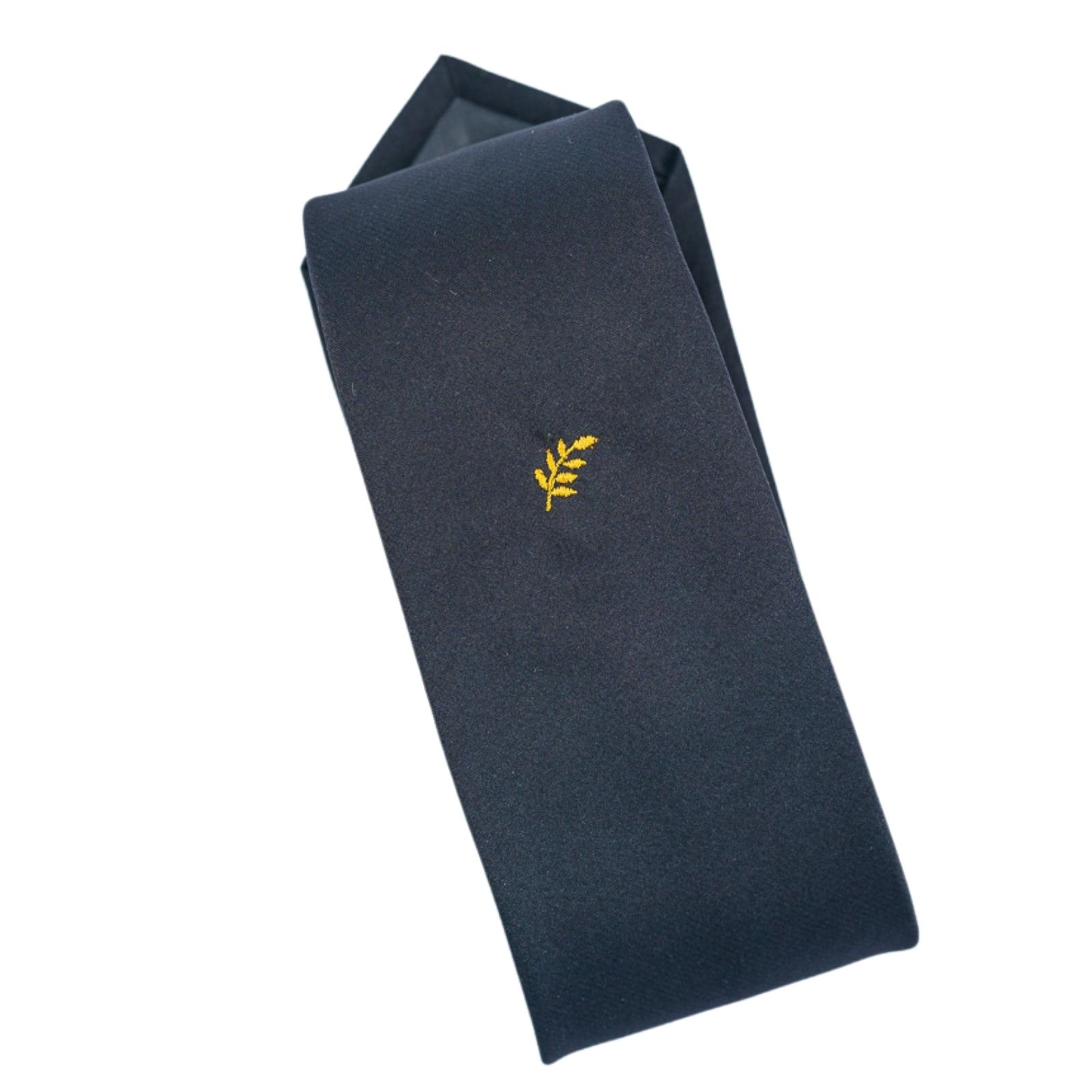 Această cravată elegantă, realizată din material textil de înaltă calitate, este decorată discret cu o ramură de acacia brodată în auriu.
