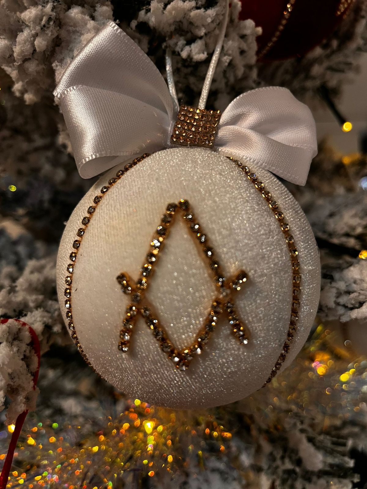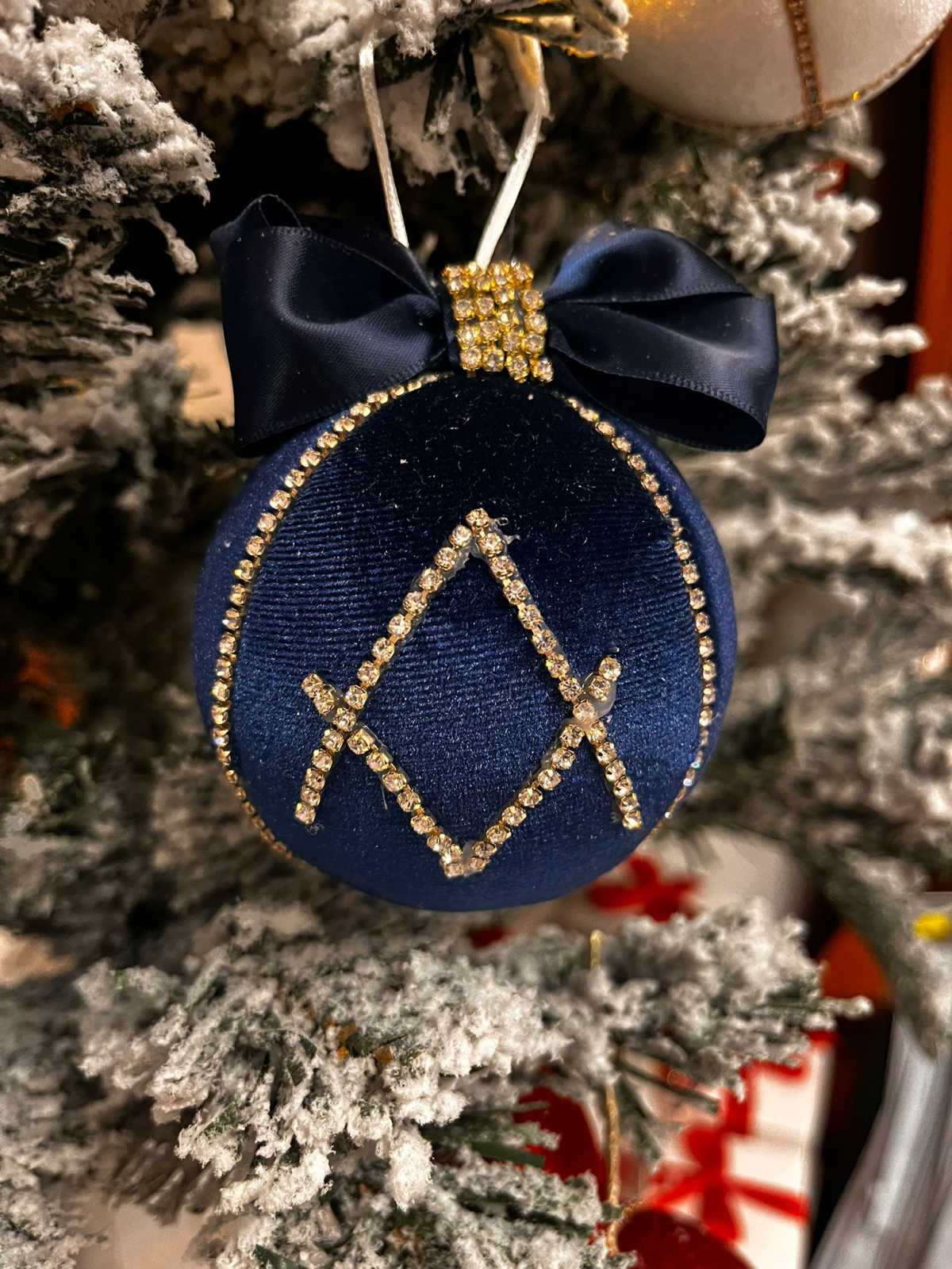 Glob elegant din catifea fină, decorat manual cu cristale pentru un efect discret, dar foarte rafinat. Completează perfect un brad clasic sau unul modern și aduce un plus de lumină și textură decorului de sărbători.