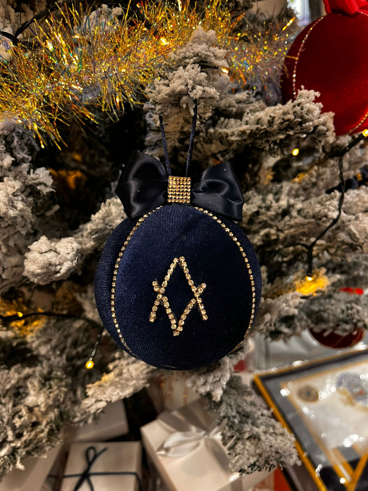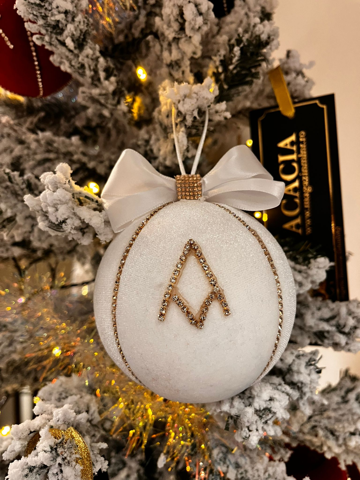 Glob elegant din catifea fină, decorat manual cu cristale pentru un efect discret, dar foarte rafinat. Completează perfect un brad clasic sau unul modern și aduce un plus de lumină și textură decorului de sărbători.