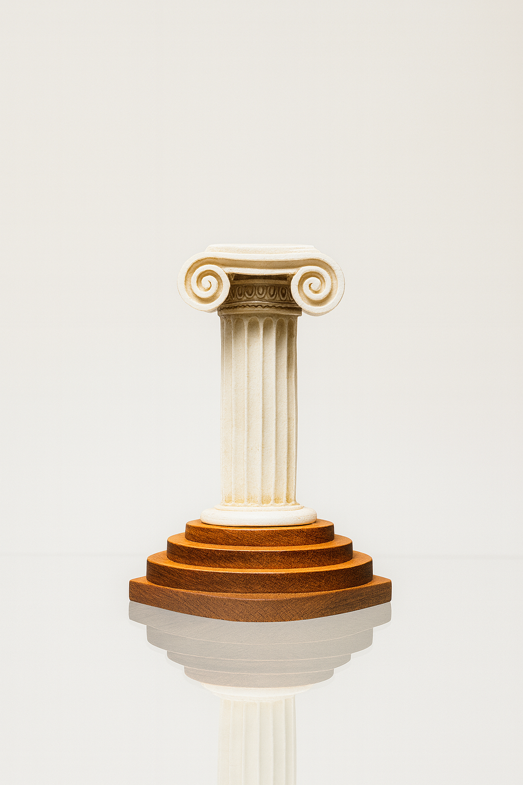 Miniatură de coloană ionică – simbol al înțelepciunii Maestrului Venerabil, soclu de lemn