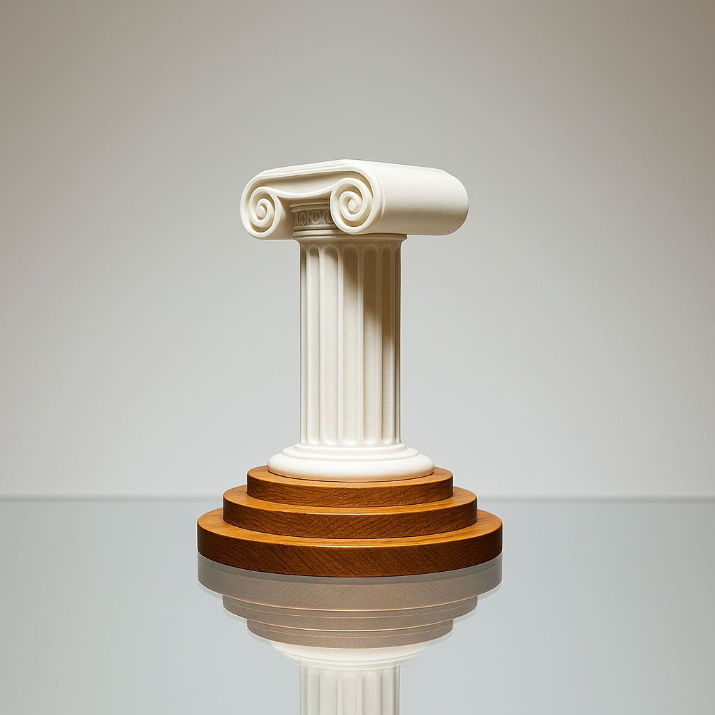 Această miniatură de coloană ionică, realizată cu atenție la detalii, simbolizează înțelepciunea, virtutea fundamentală a Maestrului Venerabil în Loja masonică.