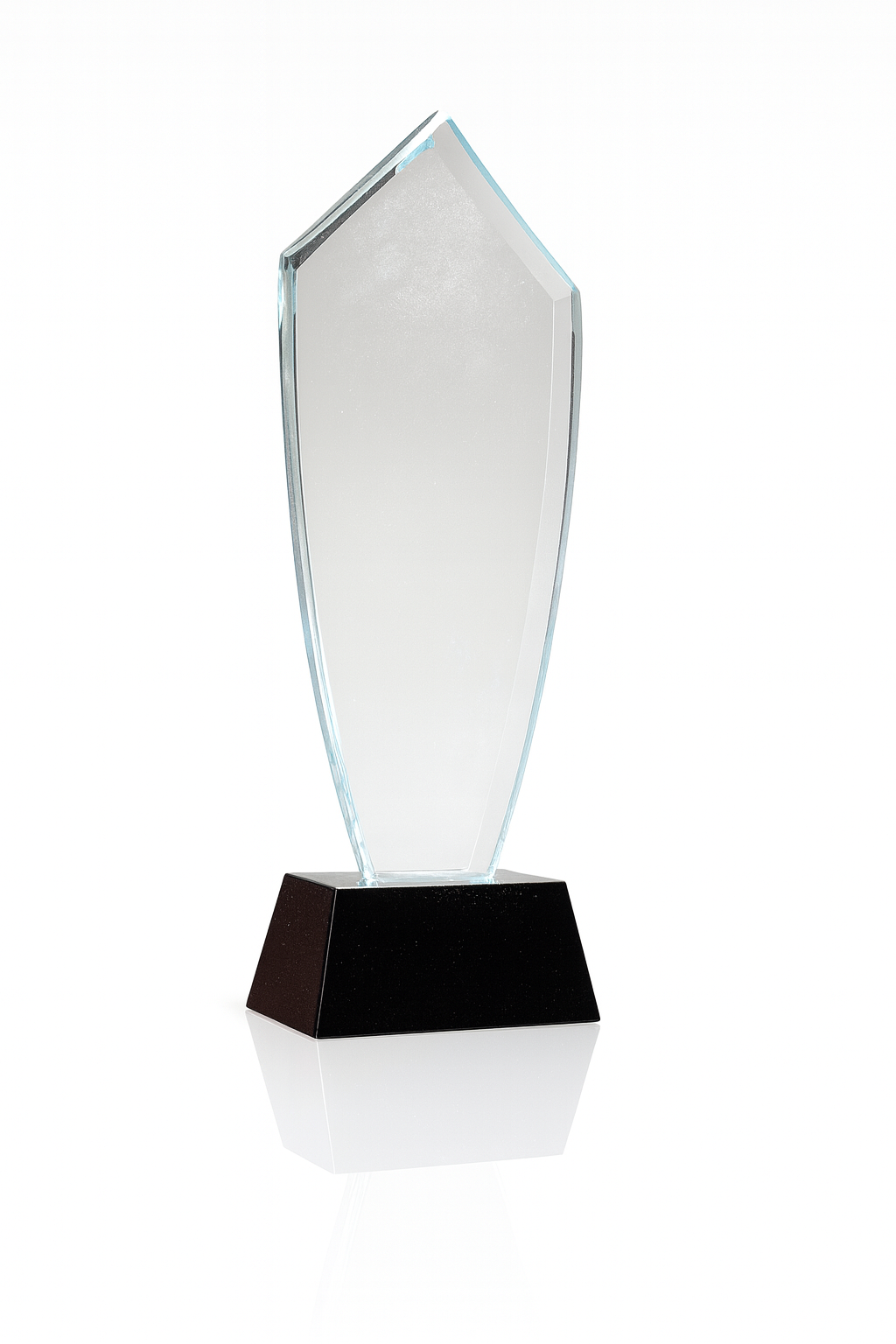 Designul vertical, cu muchii fațetate și linie asimetrică tip flacără, oferă un aspect modern și impunător. Baza neagră conferă contrast și stabilitate, punând în valoare mesajul gravat. Suprafața centrală este generoasă pentru logo, nume și titlul distincției. Potrivit pentru gale, aniversări și recunoașteri de excelență.