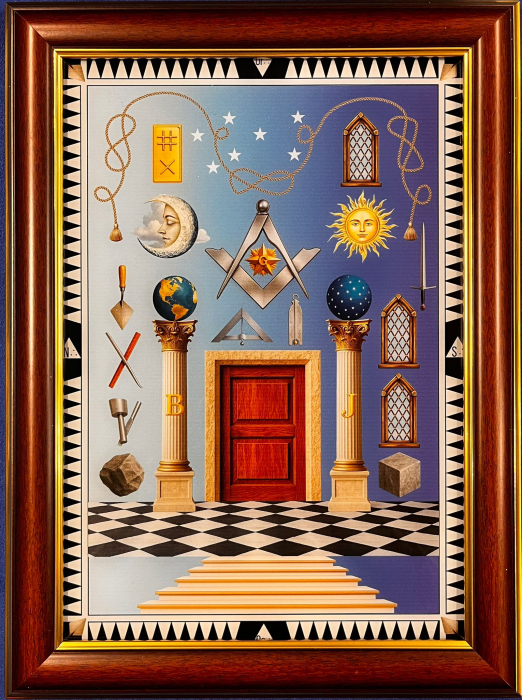 Planșă masonică simbolică, imprimată la calitate superioară, potrivită atât pentru utilizare ritualică, cât și pentru colecționari sau pentru decorarea spațiilor de lucru masonice.